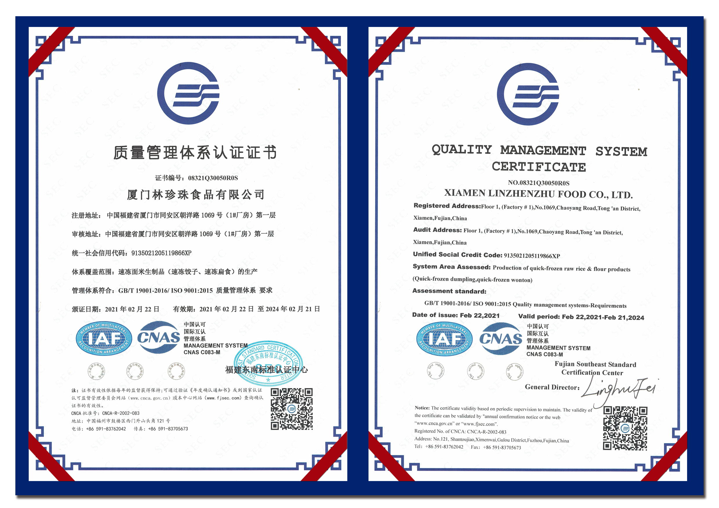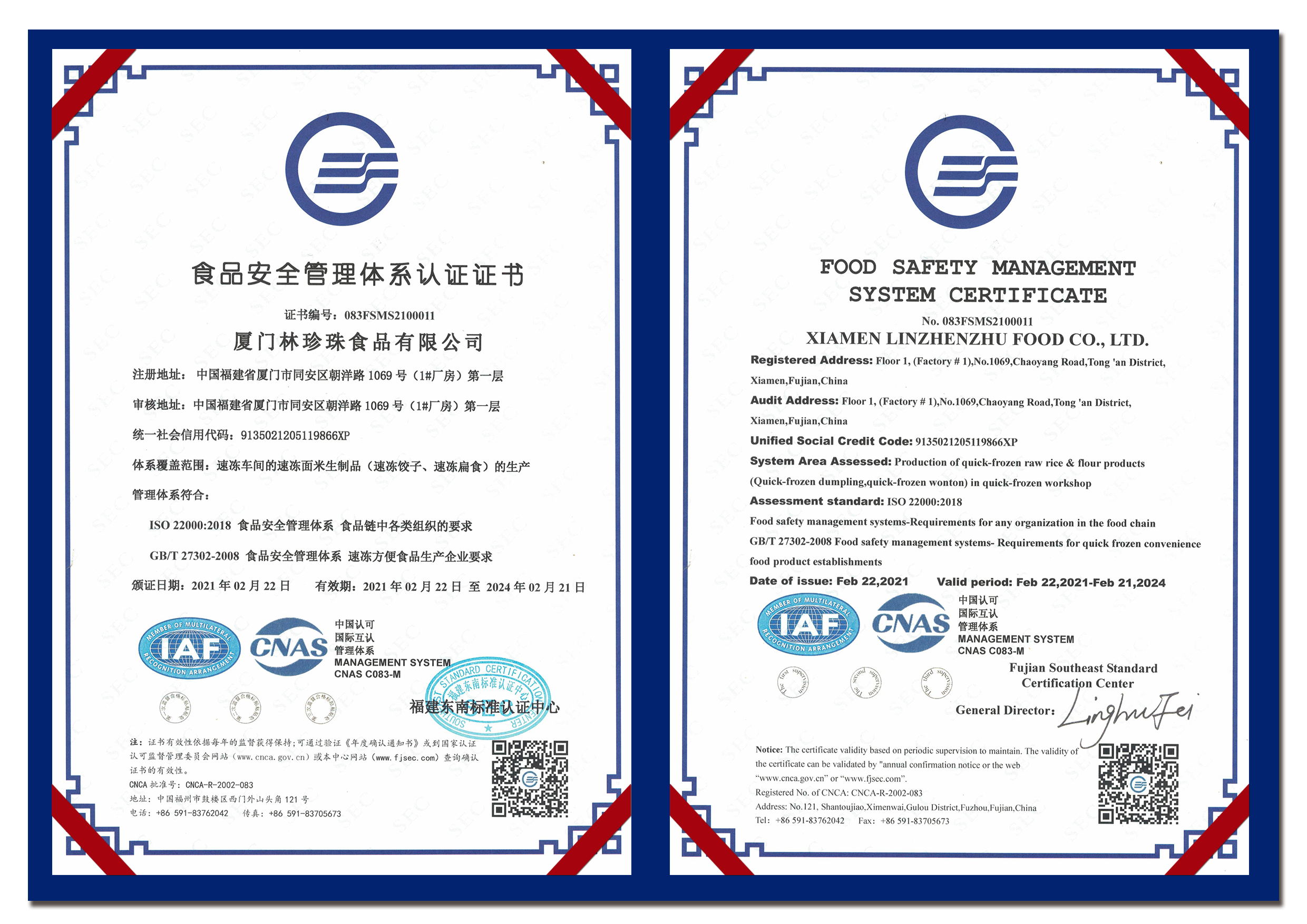 食品安全管理体系认证证书